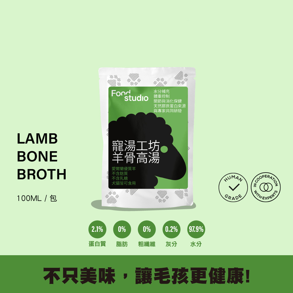 寵湯工坊選用愛爾蘭羊骨,慢火12小時熬製,0添加。專為毛孩打造安全、天然的補水選擇。