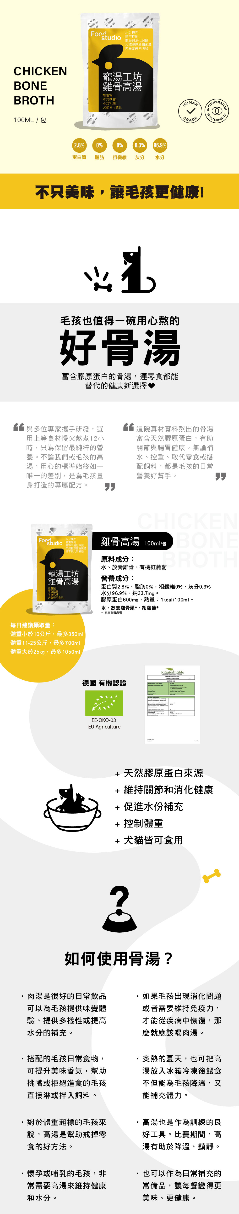 內容成分:水、有機放養雞骨、有機胡蘿蔔